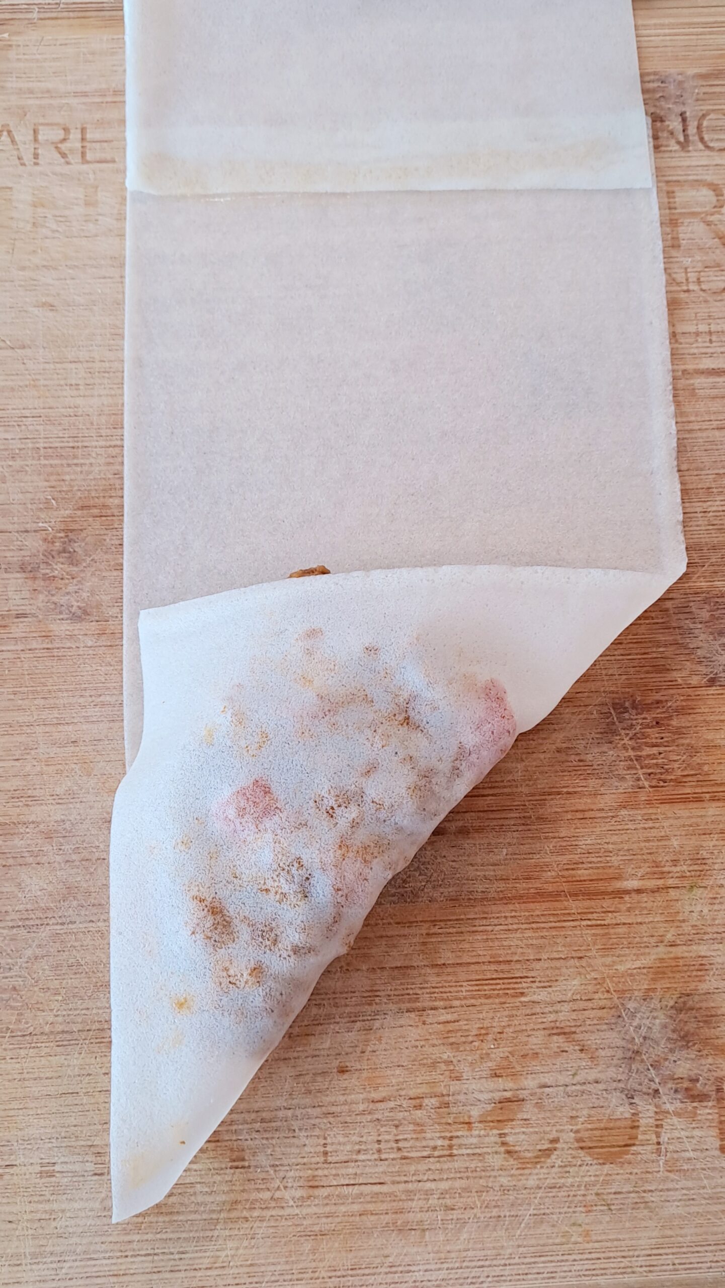 Place a heaped tablespoon of the cooled mince mixture at the end of the strip of pastry. Fold the pasty to make a triangle.