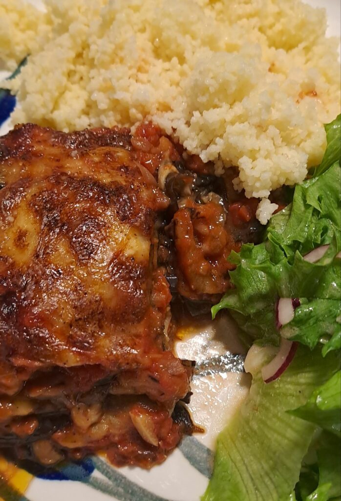 Serve this classic dish with couscous or rice and a salad. It’s best to leave the parmigiana to rest for 10 minutes before eating to allow the flavours to fully develop.