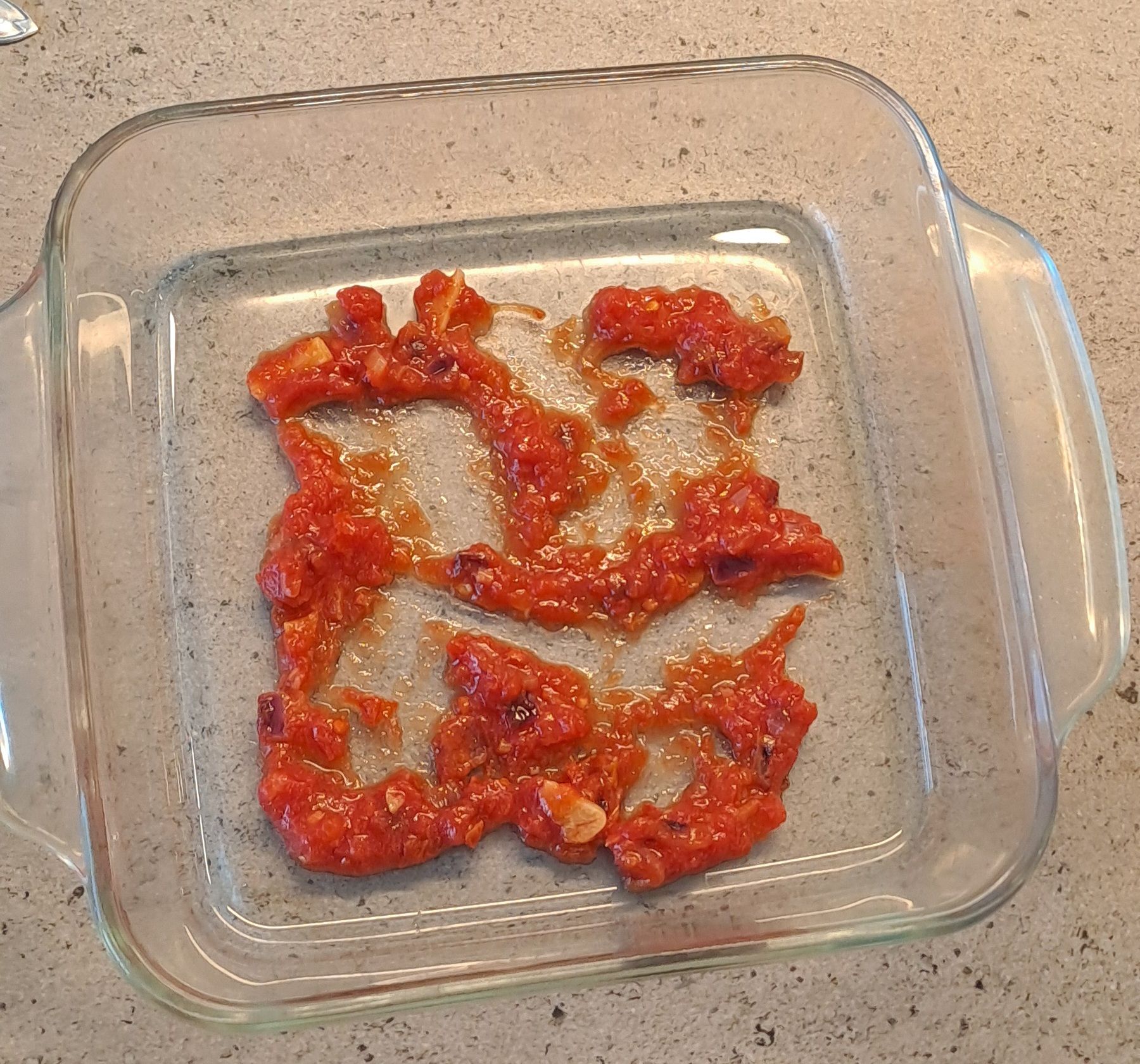 Spread a couple of tablespoons of the tomato sauce across the base of a baking dish.