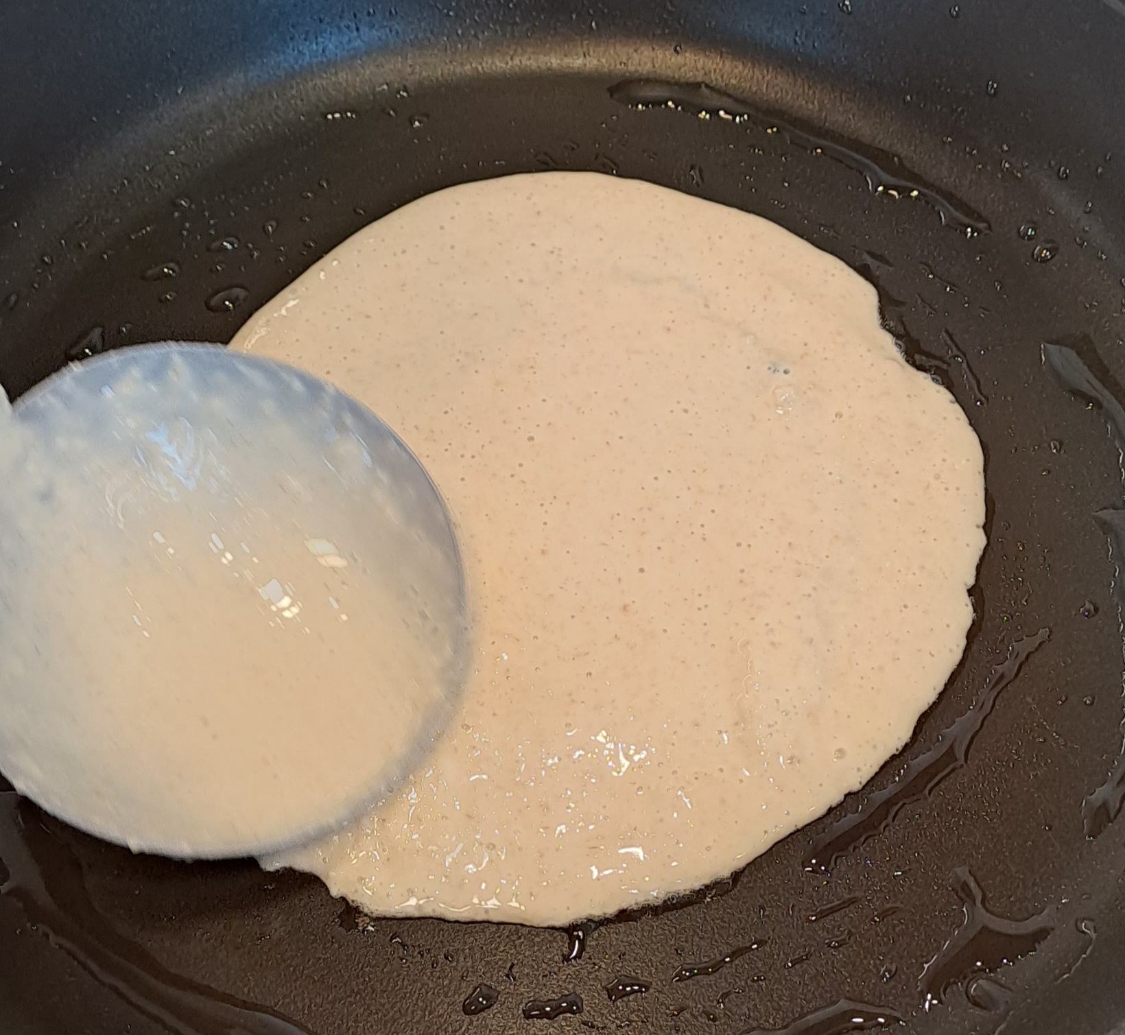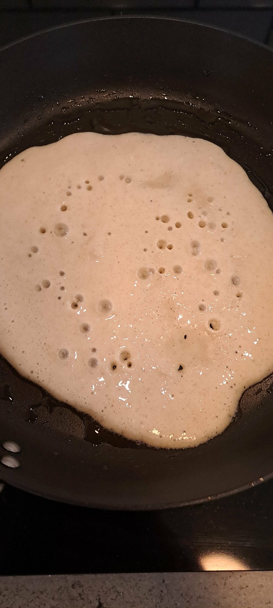 Once the batter has risen a little and bubbles have formed on the surface it is time to cook.