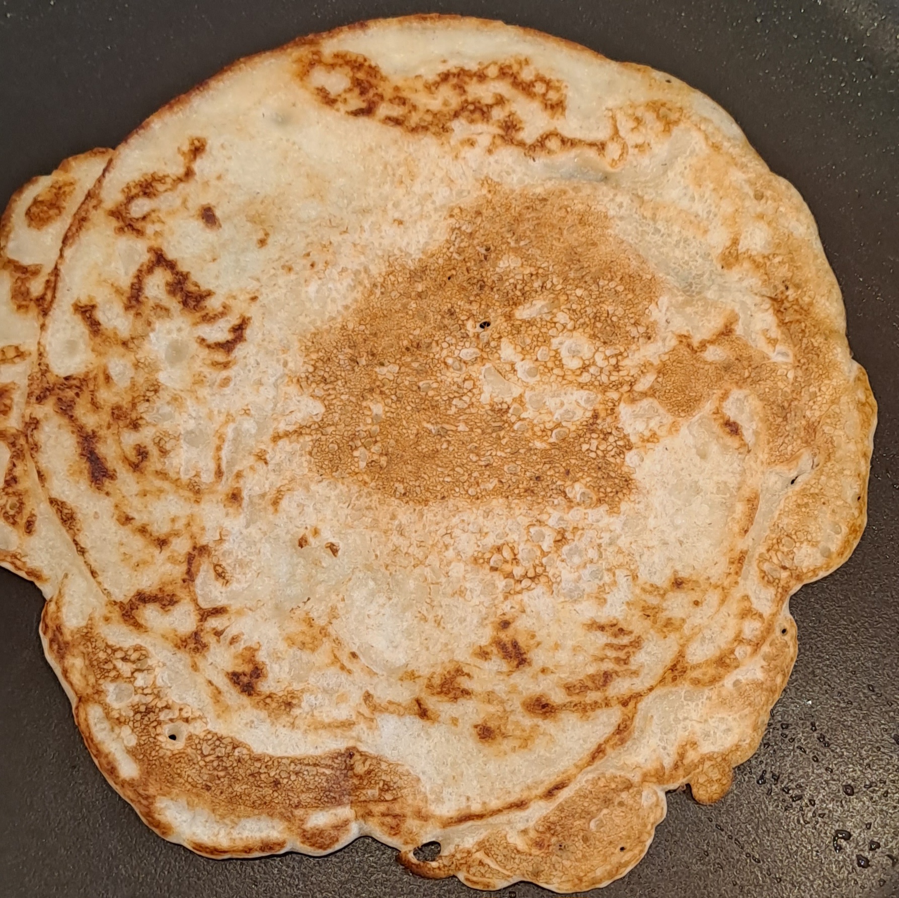 Cook for 3-4 minutes until bubbles form on the surface and the bottom starts to brown. Flip the oatcake and cook for another 3-4 minutes on the other side.