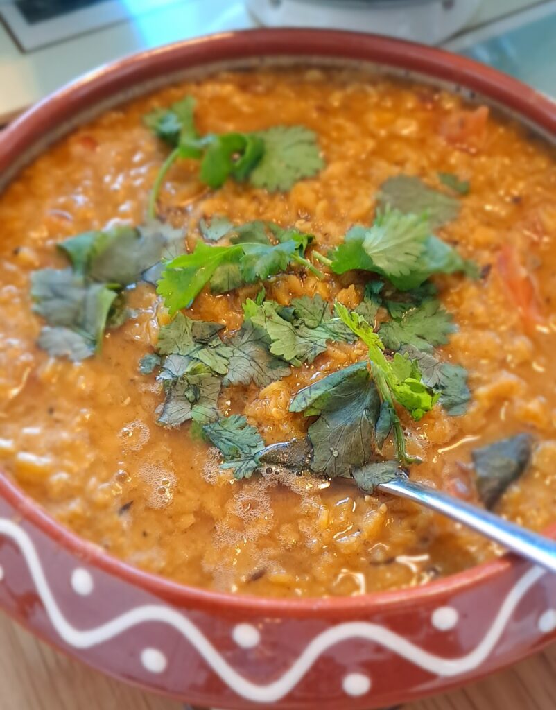 The dahl can be made in advance as the flavours will develop over time. It can also be made in a large batch and frozen for an easy meal in the future. You could even let it down with some stock and have it as an impromptu soup lunch!