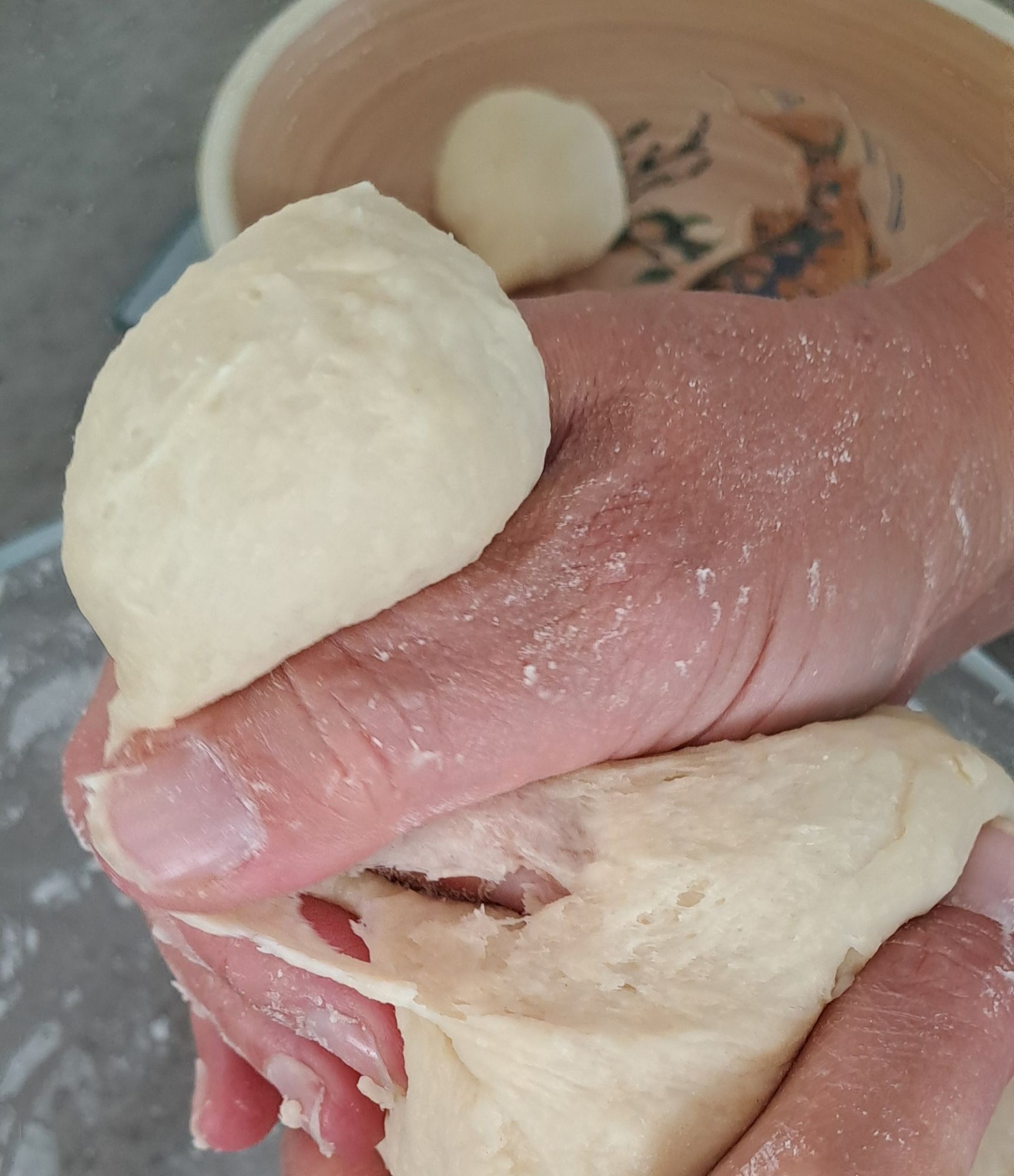Pull off small pieces of the dough and roll to form balls.