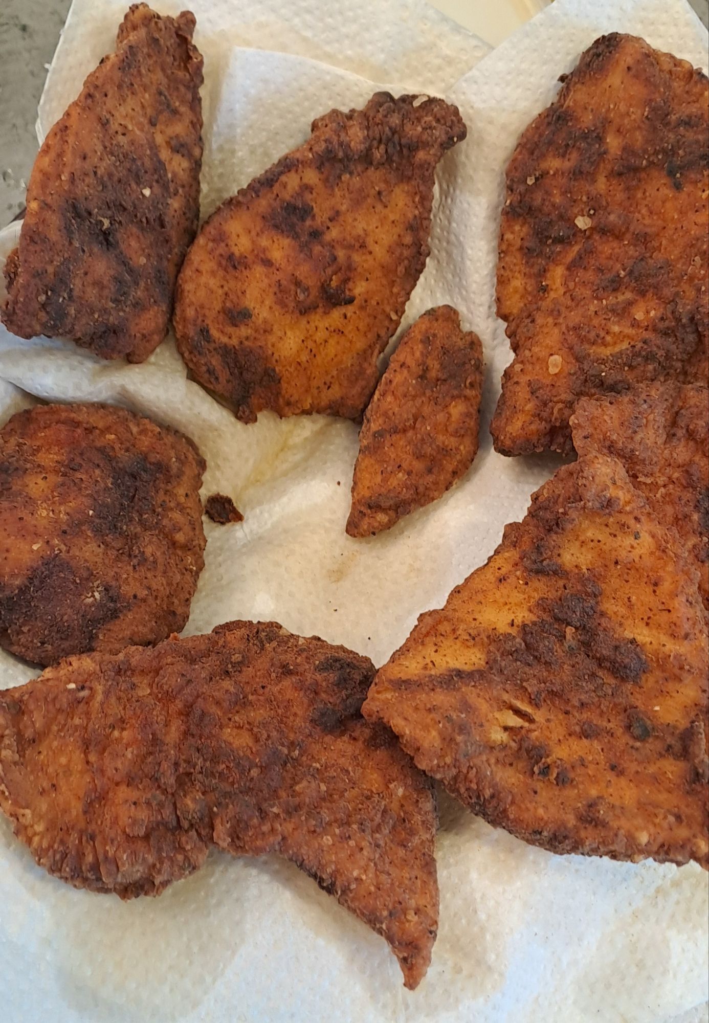 4. Once cooked remove the chicken from the oil and drain on some kitchen roll. Add the other half of the chicken and repeat the procedure until all the chicken is cooked and drained.