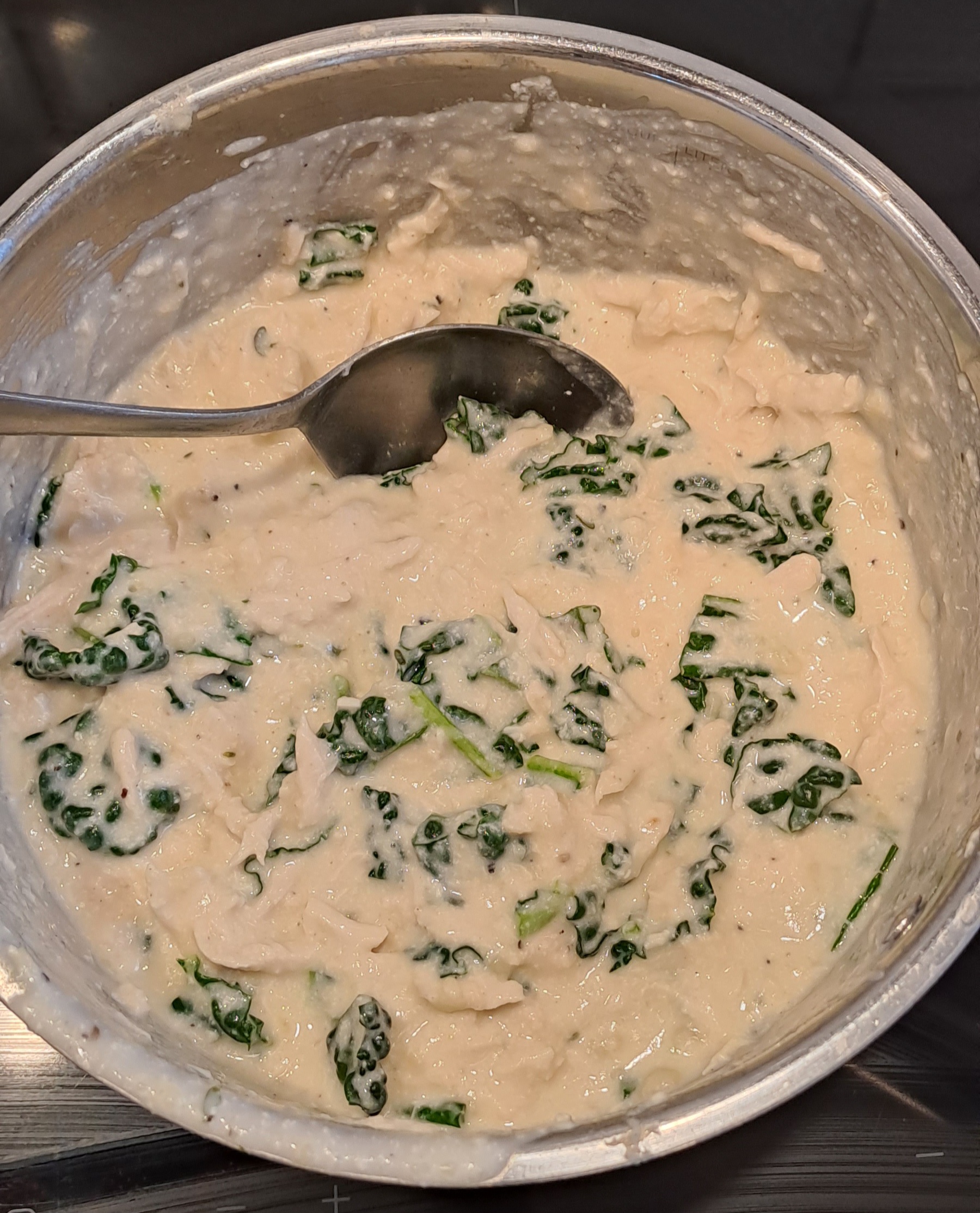 Remove a ladle of the cream sauce and set aside until assembling the lasagne.