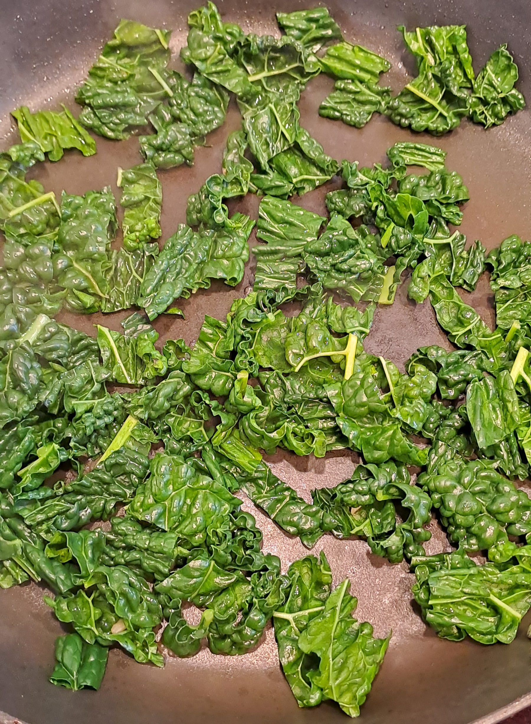 Heat a frying pan over a medium heat and add the kale. Wilt the kale with a splash of water for about a minute. Remove from the frying pan and set to one side.