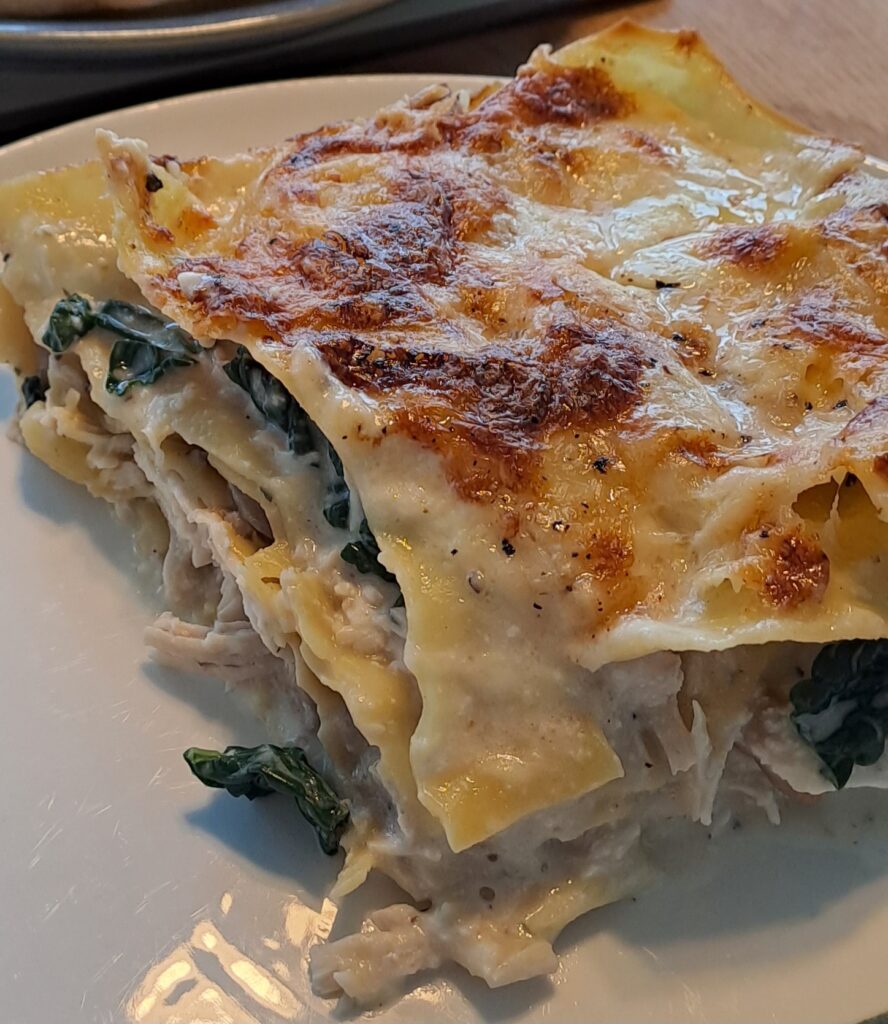 White Chicken Lasagne with Mushrooms and Kale